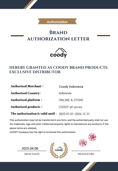 Sebagai distributor eksklusif, Coody Indonesia berkomitmen untuk memberikan produk-produk Coody terbaik dan memastikan setiap pelanggan kami mendapatkan pengalaman outdoor yang tak terlupakan dengan perlengkapan yang dapat diandalkan.